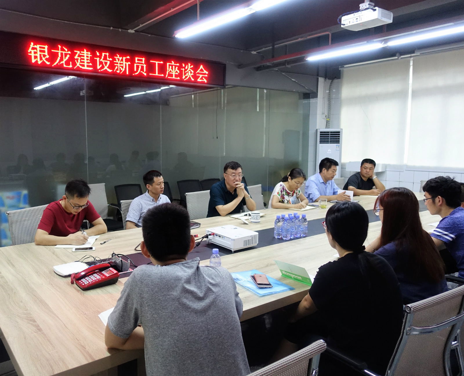 7月4號上午,銀龍建設在深圳總部召開迎新座談會歡迎10名新到崗的員工,公司總經理孫衛國等班子成員出席會議。